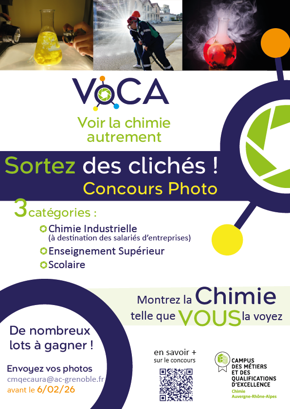 Le concours photo VoCA – Voir la chimie autrement, invite notamment les collaborateurs des entreprises de la Chimie en Auvergne-Rhône-Alpes à partager leur vision personnelle, créative et authentique de la chimie.